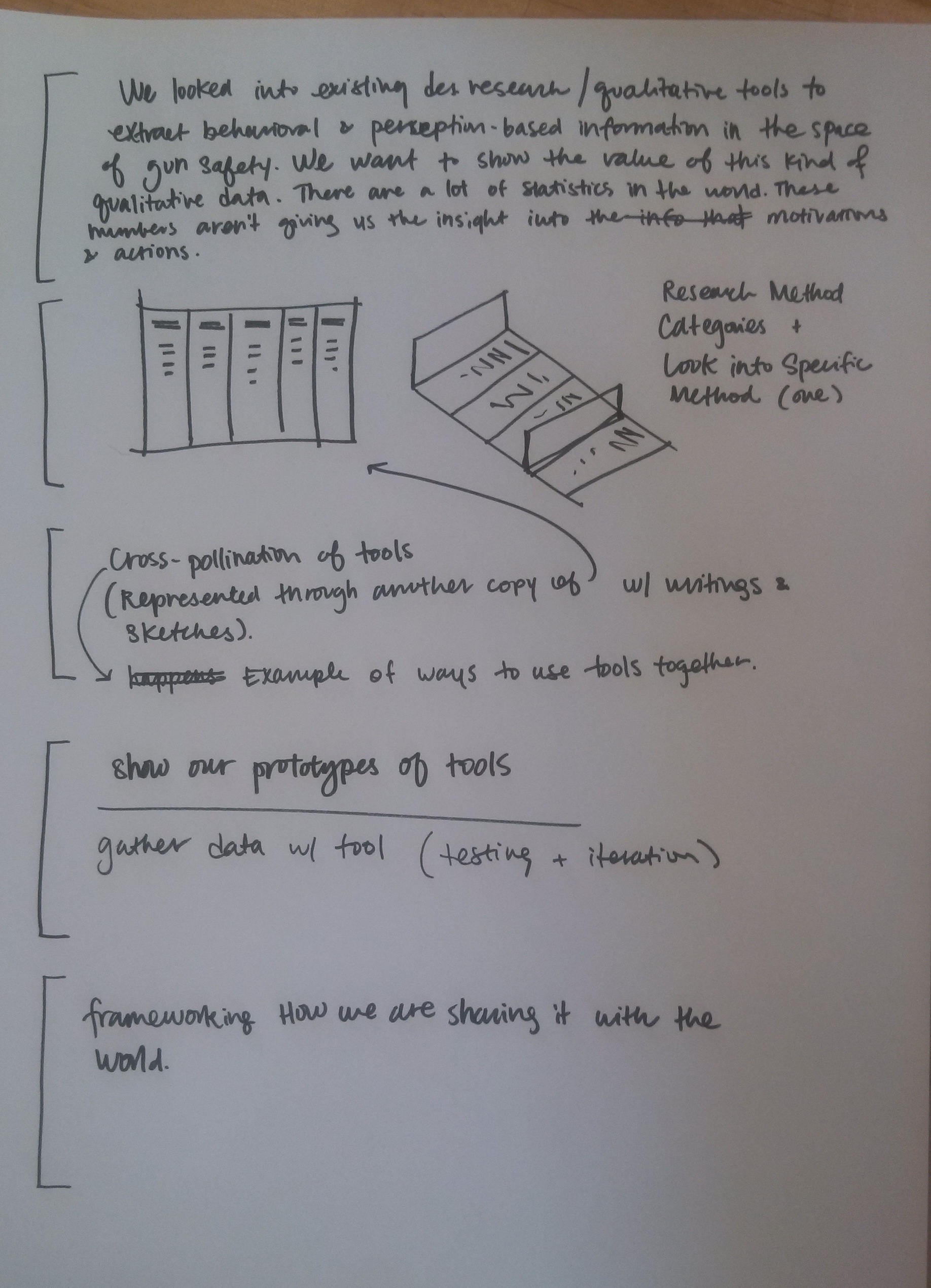 We then brainstormed ways to represent this analysis of tools to others, and how to begin to understand how the methods can be used together: