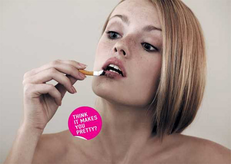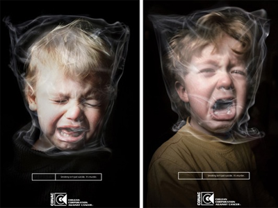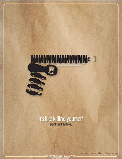 In order to create a gun safety campaign that is compelling and thought-provoking, I have been looking at existing public health campaigns for various other hazards. The following are examples of print, media, and installations that succeed at challenging perceptions through provocative imagery, careful design, and innovative messages. Some consistent themes/methods used in these ads include vanity, design fiction, images of children, visualizations of more abstract ideas, objectification, disturbing imagery, and symbolism.