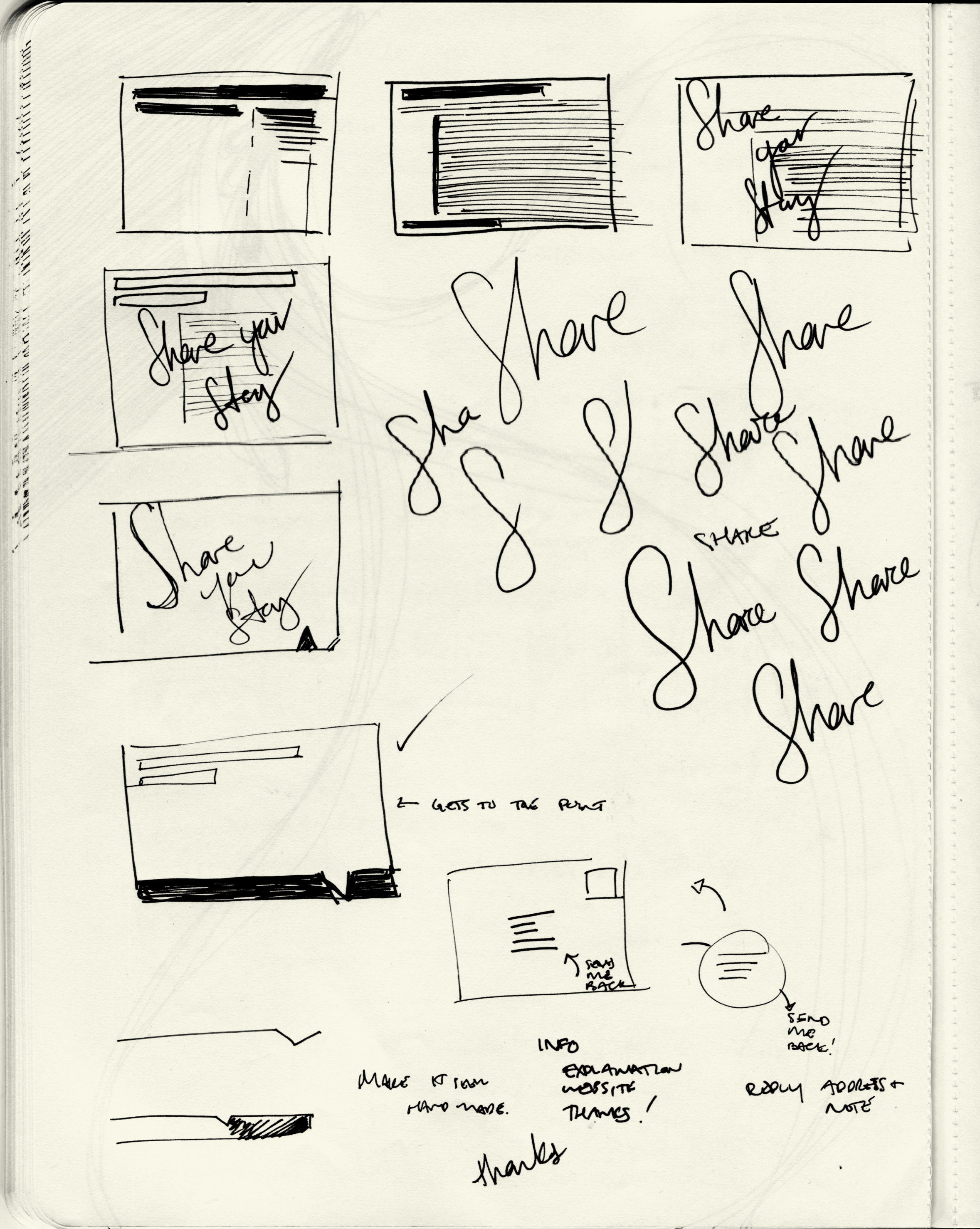 I started out by sketching different layout possibilities for my postcard, the goal of the postcard is to: