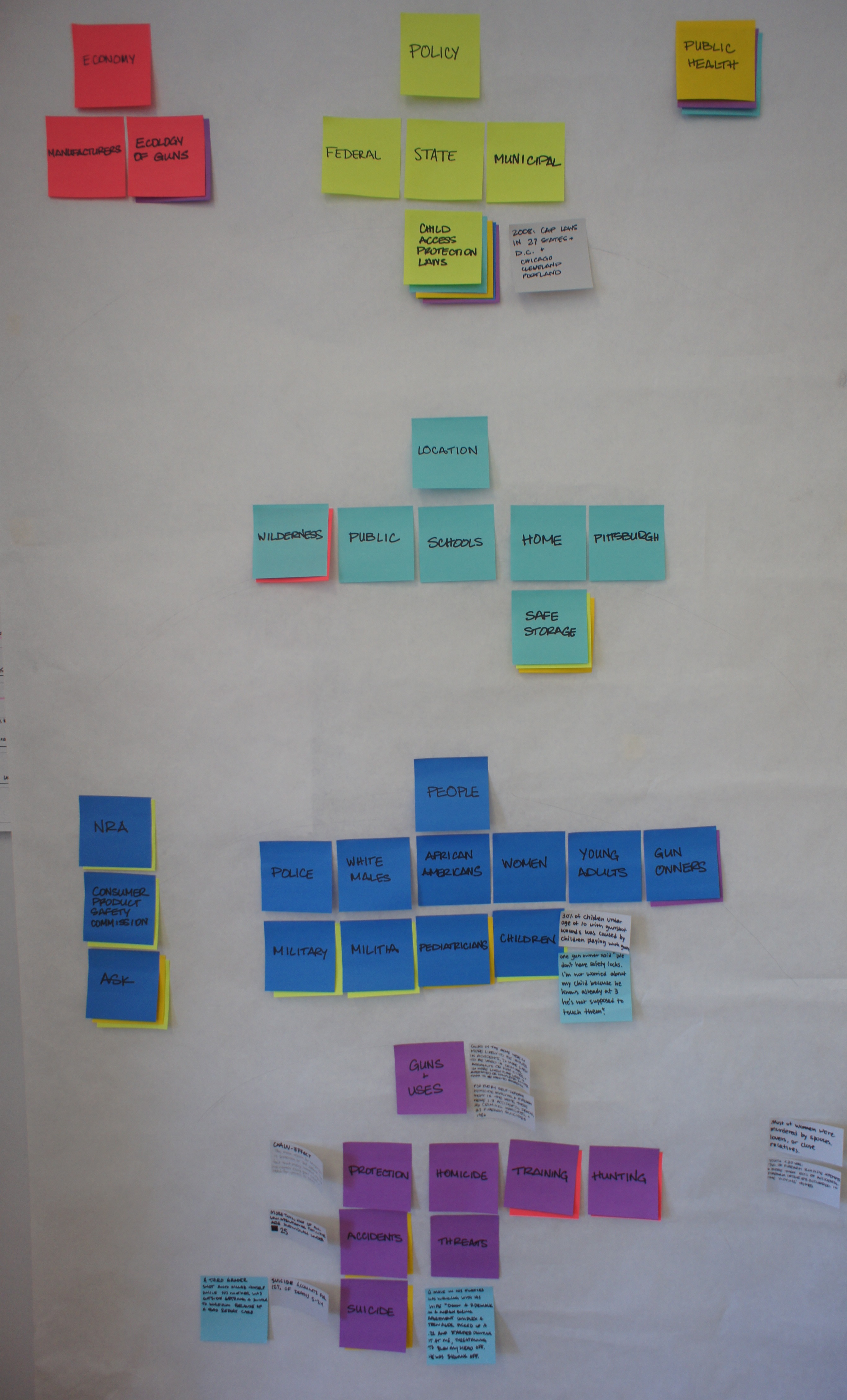 We decided to create a map that shows the narrow -> broad perspective. It starts with guns -> people -> location -> Policy + Economy + Public Health